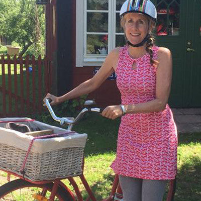 I love clothing that looks great and feels great, yet also performs for biking, and even goes from the bike straight to the yoga studio. My Nuu-Muu is super comfy and looks so fabulous. I also love the coverage of the Nuu-Muu – it is flattering to different body shapes, and I appreciate that. And Nutcase has been my helmet(s) of choice for a few years – I love to have choice in colors and graphics to suit my mood. For a few years now I’ve alternated between a red-and-white Mini Dots helmet and a Hula Blue. One of the features I love best about my Gen3 Nutcase helmets is the removable ear pads for winter wear. I also adore the magnetic buckle – you can take the helmet off with one hand, which turns out to be far ‘handier’ than you might think!