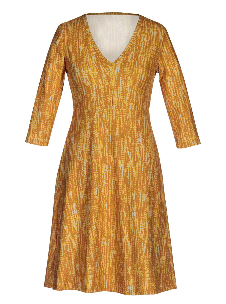 An all-season live-your-best-life-dress! Designed to go everywhere and be anywhere, the GoBe dress might just be your new "go to." Incredibly comfy and versatile, but with ¾ sleeves for year-round versatility, additional length (think twirl factor!) and a charming V-neckline. The fabric is similarly fantastic but has a slightly matte, super soft finish.