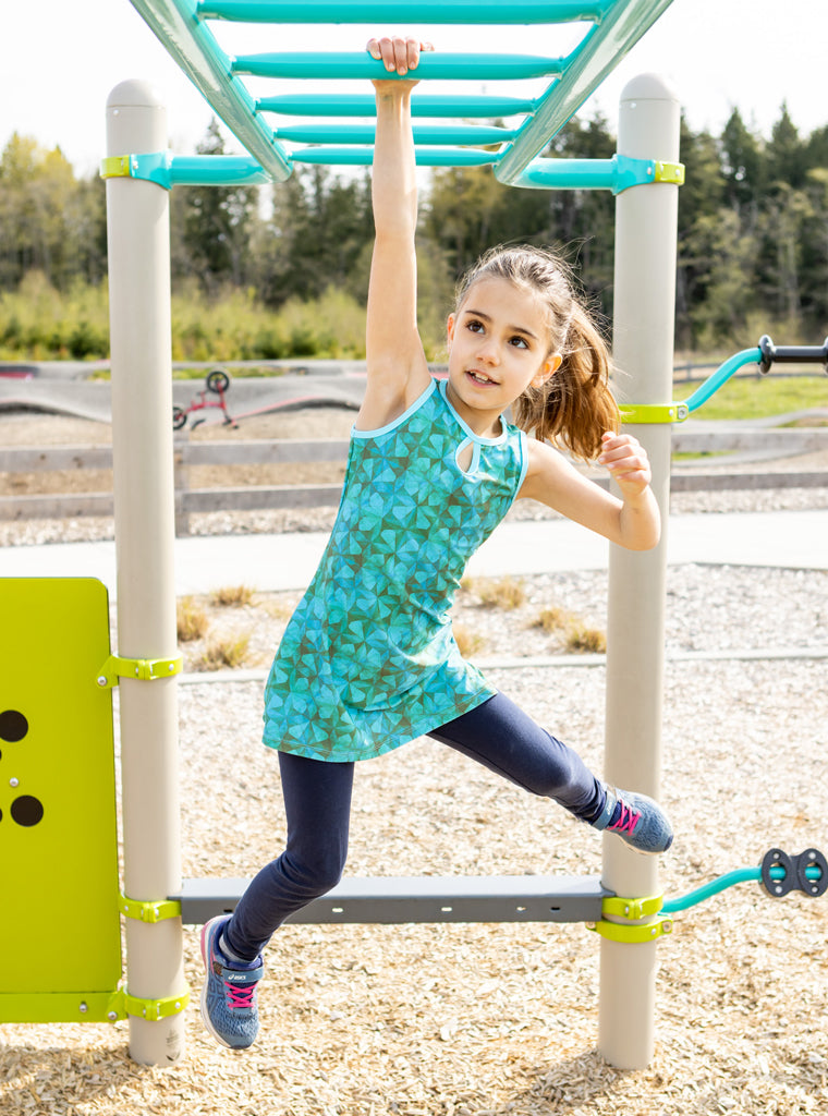 The perfect play dress. Moves with them on the playground, resists the toughest stains and the sharpest tree branch, layers great for any weather.