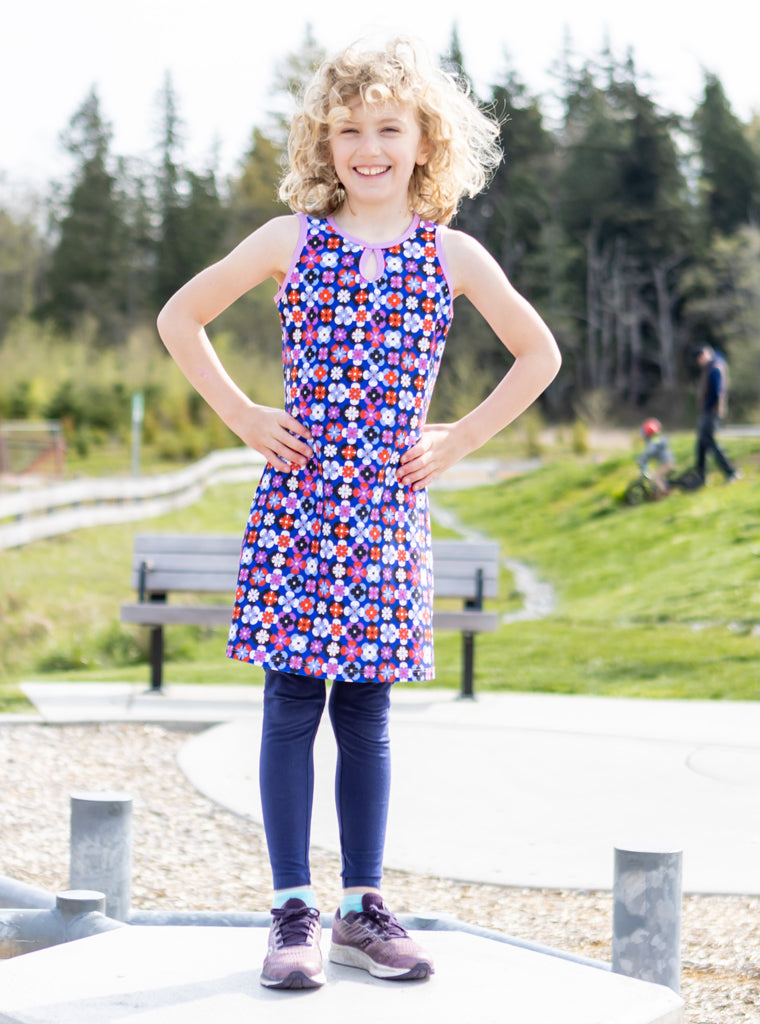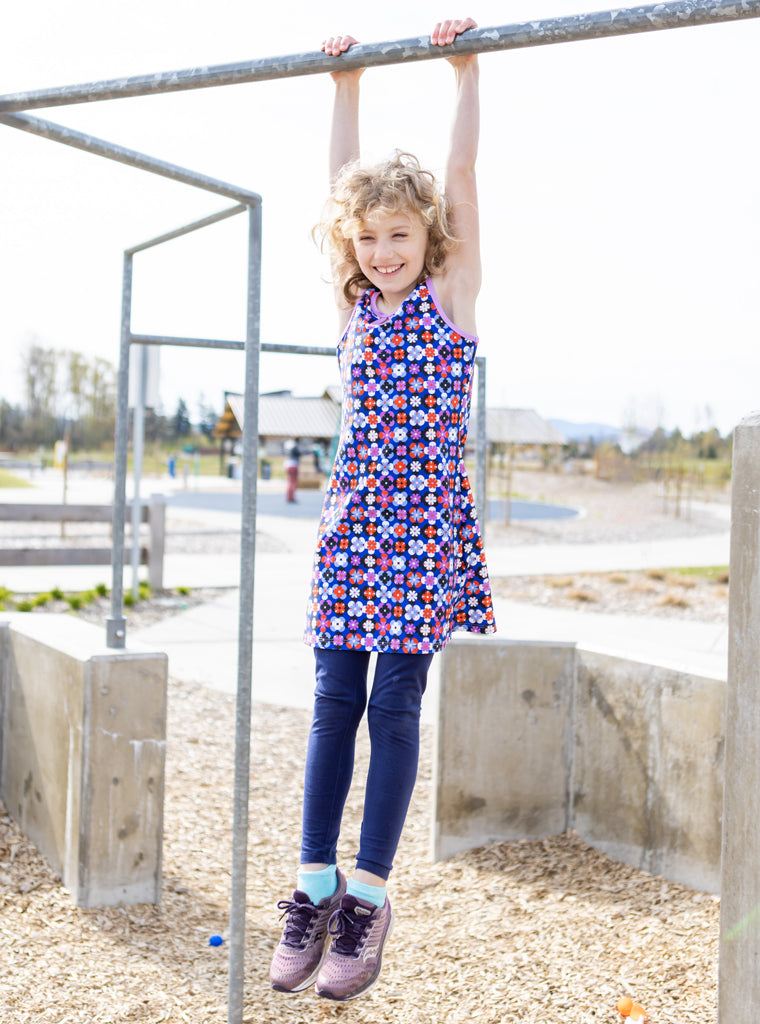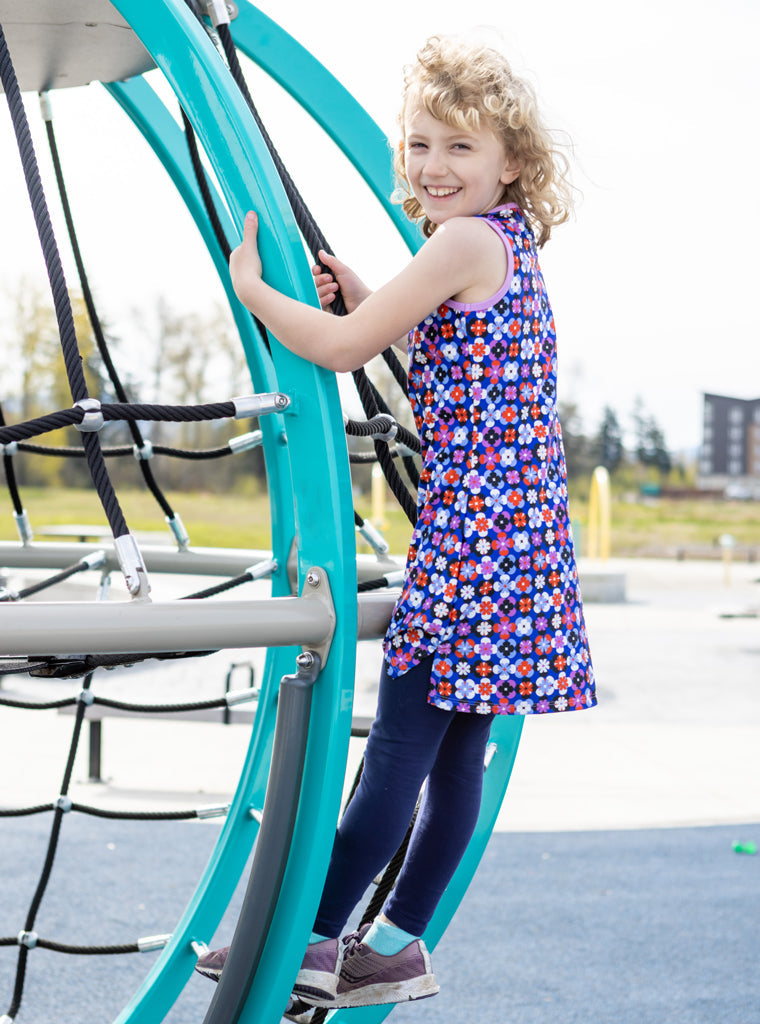 The perfect play dress. Moves with them on the playground, resists the toughest stains and the sharpest tree branch, layers great for any weather.