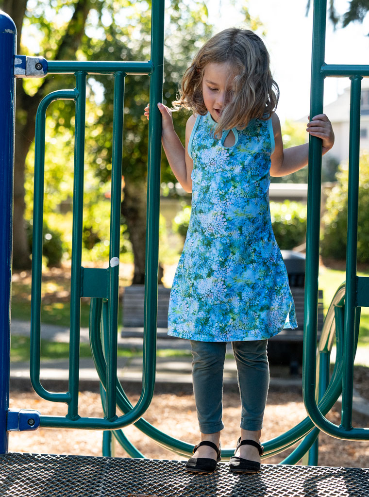 The perfect play dress. Moves with them on the playground, resists the toughest stains and the sharpest tree branch, layers great for any weather.
