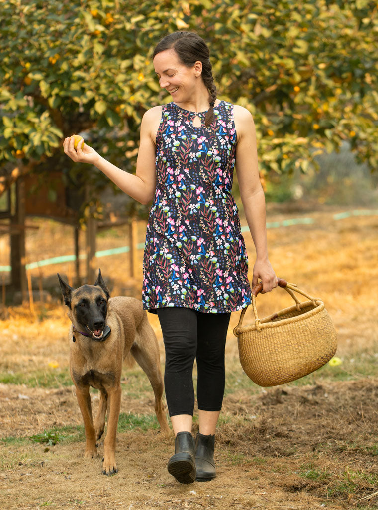Our original dress created for all bodies, all the time. A flattering silhouette that goes anywhere. Equally at home stand up paddleboarding or couch surfing. A piece of wearable art that you'll wear everywhere.