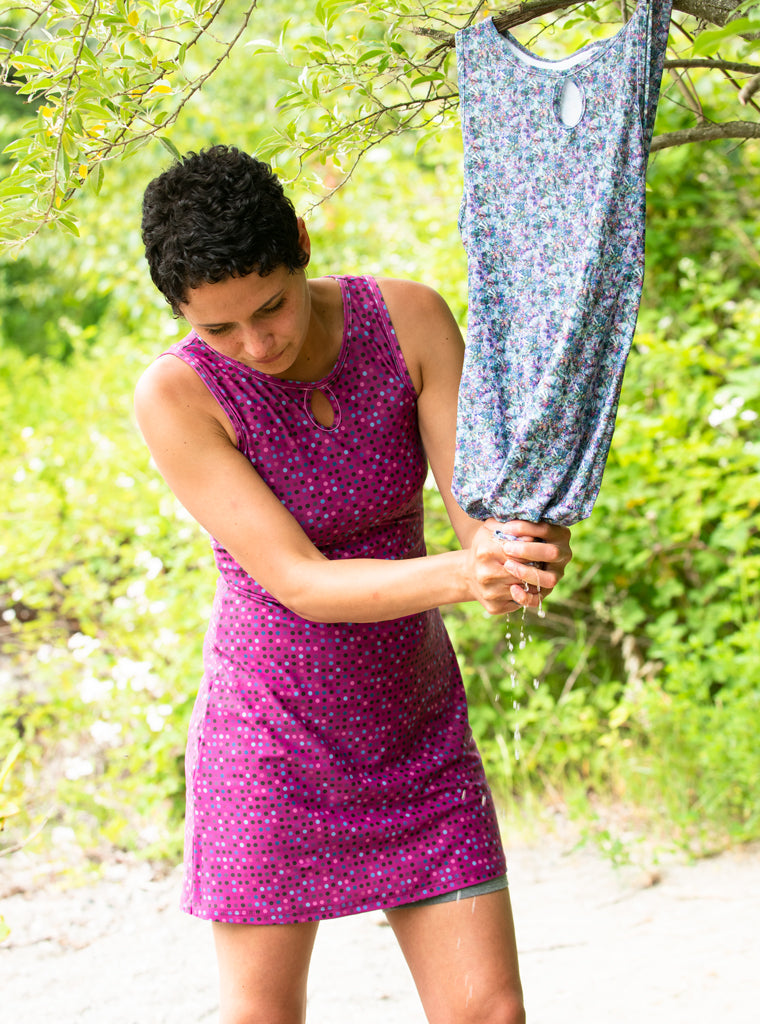 We took our Classic Keyhole Dress and added a nifty back pocket for stashing essentials on the go. Perfect for phones, credit cards, energy gels, a key, etc., our signature pocket is located discreetly at the lower back so there is nothing in your way, all darn day. YAY!